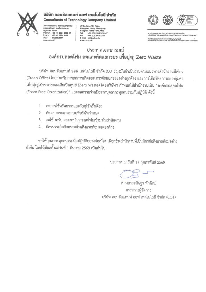 ประกาศเจตนารมณ์ องค์กรปลอดโฟม ลดและคัดแยกขยะ เพื่อมุ่งสู่ Zero Waste