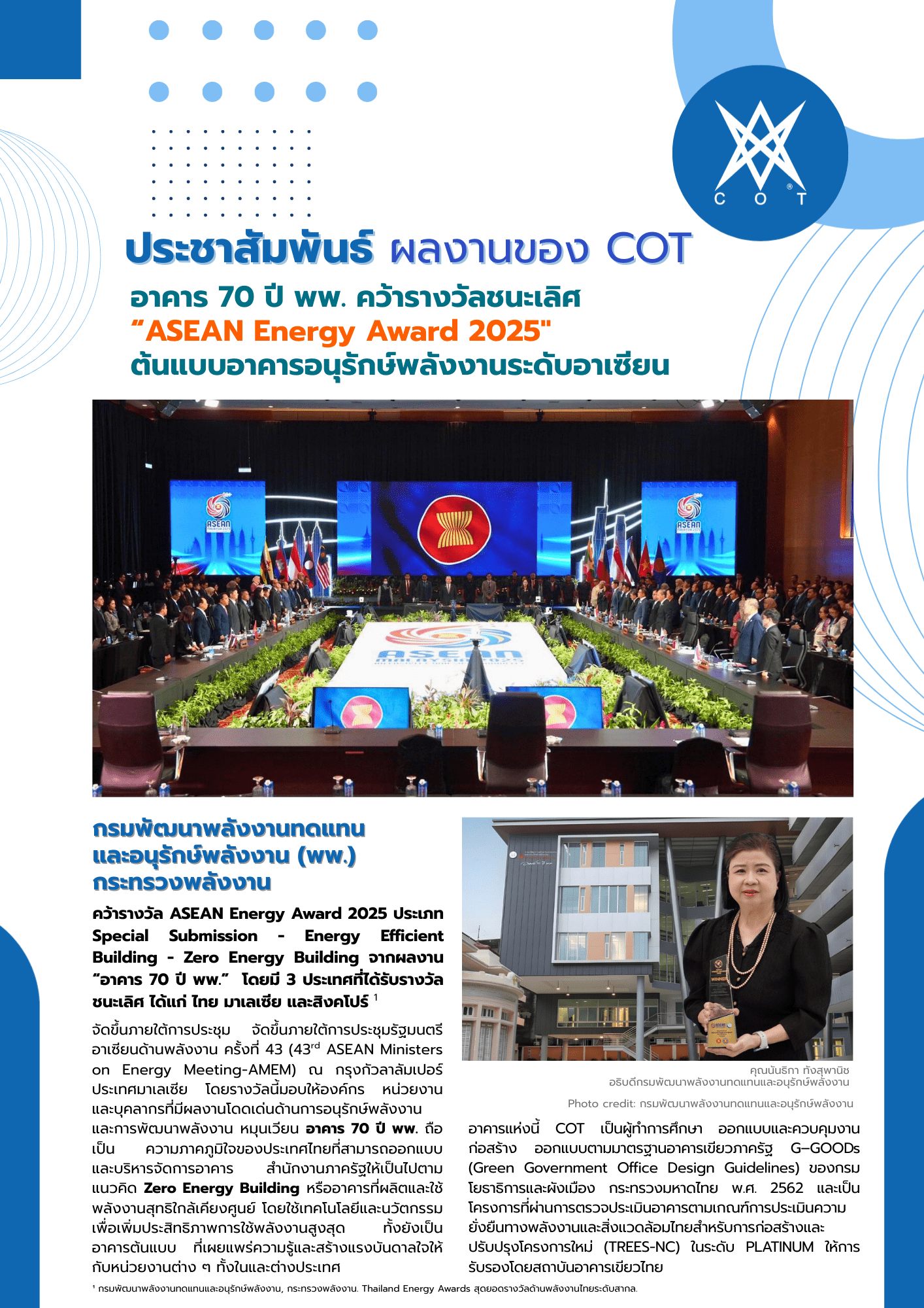 COT ภูมิใจที่ได้เป็นส่วนหนึ่งของความสำเร็จครั้งนี้