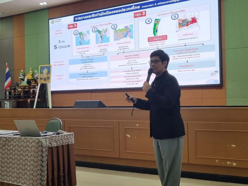 การนำเสนอแนวคิด: คุณพงศธร เนตรวิเชียร ผู้จัดการโครงการจากบริษัท COT ได้ชี้แจงวัตถุประสงค์โครงการ พร้อมนำเสนอข้อมูลแนวคิดเบื้องต้นและผังทางเลือกในการพัฒนาเมืองชะอำ