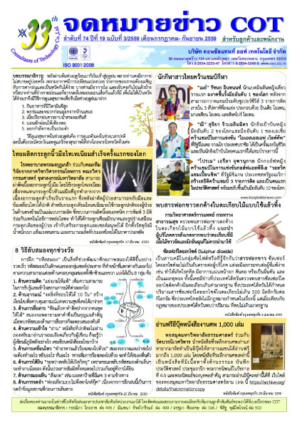 จดหมายข่าว COT ประจำเดือนกรกฎาคม-กันยายน 2558 Studio962017-10-02T18:02:57+00:00 [...] FacebookTwitterLinkedInGoogle +Email Read more...