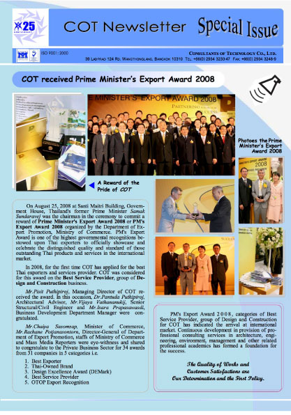 จดหมายข่าว COT (ฉบับพิเศษ) – PM’s Export Award 2008 Studio962017-10-02T17:56:13+00:00 [...] FacebookTwitterLinkedInGoogle +Email Read more...