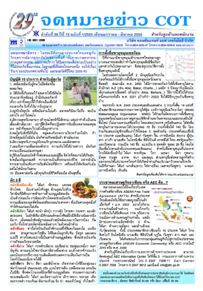 จดหมายข่าว COT ประจำเดือนมกราคม-มีนาคม 2555 Studio962017-10-02T17:58:26+00:00 [...] FacebookTwitterLinkedInGoogle +Email Read more...