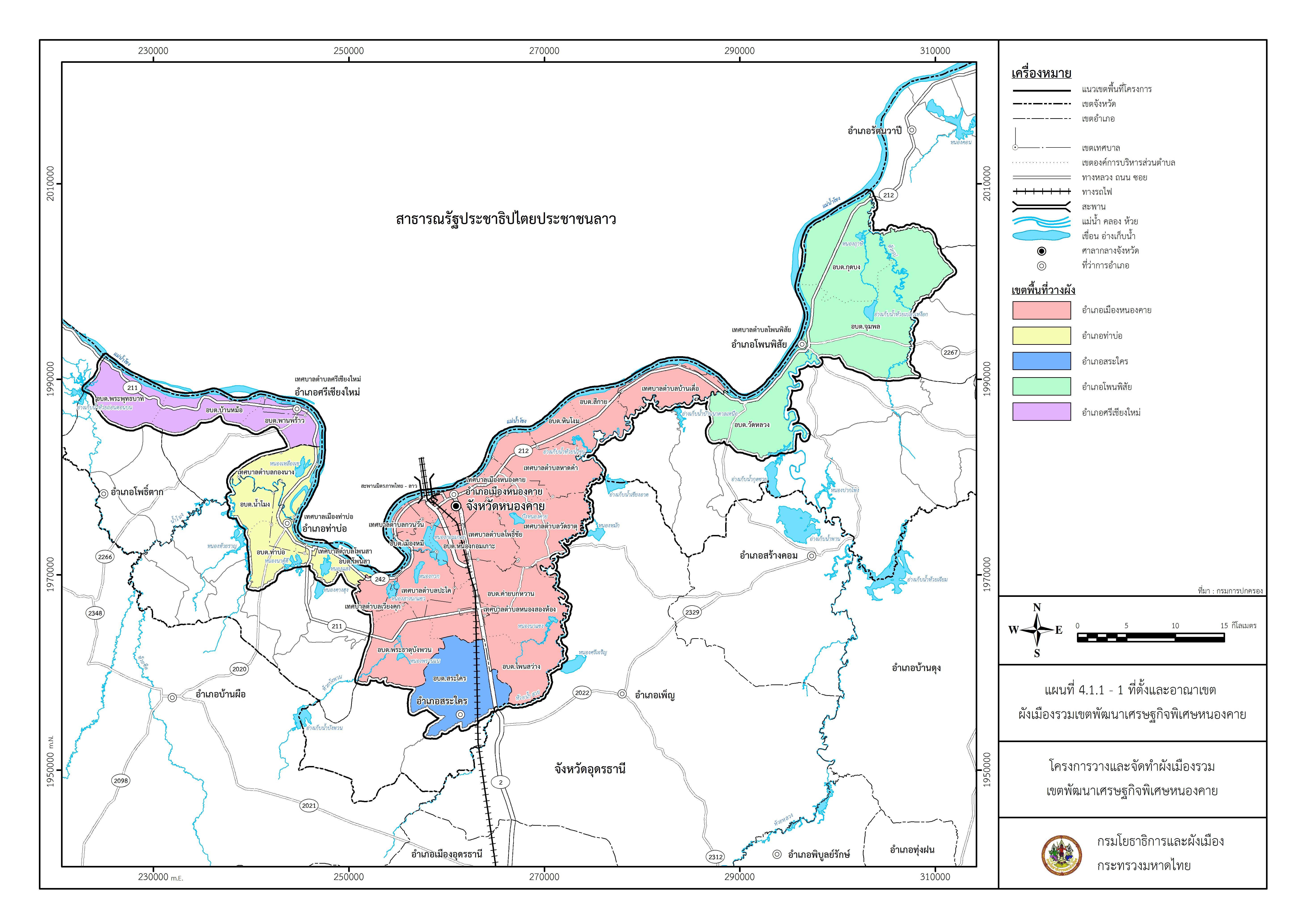จัดทำร่างผังเมืองรวม และการประชุมรับฟังความคิดเห็นของประชาชนเพื่อดำเนินการวางและจัดทำผังเมืองรวมเขตพัฒนาเศรษฐกิจพิเศษหนองคาย เนื่องจากกรมโยธาธิการและผังเมือง ได้ดำเนินการจัดจ้างที่ปรึกษาในปีงบประมาณ พ.ศ. 2559 เพื่อดำเนินการวางและจัดทำผังเมืองรวมเขตพัฒนาเศรษฐกิจพิเศษหนองคาย โดยได้ส่งงานงวดสุดท้าย (Final Report) เสร็จเรียบร้อยแล้ว แต่ปัจจุบันยังไม่ผ่านความเห็นชอบของคณะกรรมการผังเมือง ซึ่งมติคณะกรรมการผังเมืองให้ผังเมืองรวมเขตพัฒนาเศรษฐกิจพิเศษหนองคาย ซึ่งยังไม่ผ่านความเห็นชอบของคณะกรรมการผังเมือง จะต้องกลับไปดำเนินการให้เป็นไปตามที่พระราชบัญญัติการผังเมือง พ.ศ. 2562 กำหนดไว้ กล่าวคือ ให้นำกลับไปดำเนินการประชุมรับฟังความคิดเห็นของประชาชนอีกครั้ง