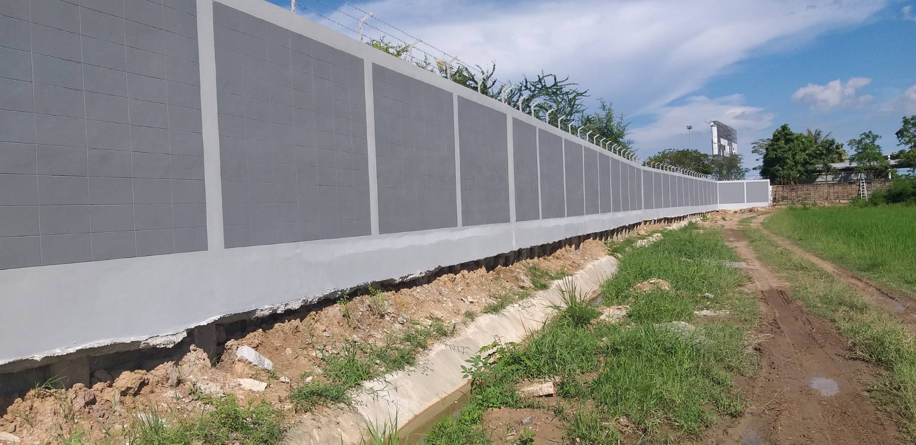 – งานก่อสร้างเสาเข็มและฐานรากรั้วและกำแพงกันดิน ป้องกันดินพัง พื้นที่ 15 ไร่