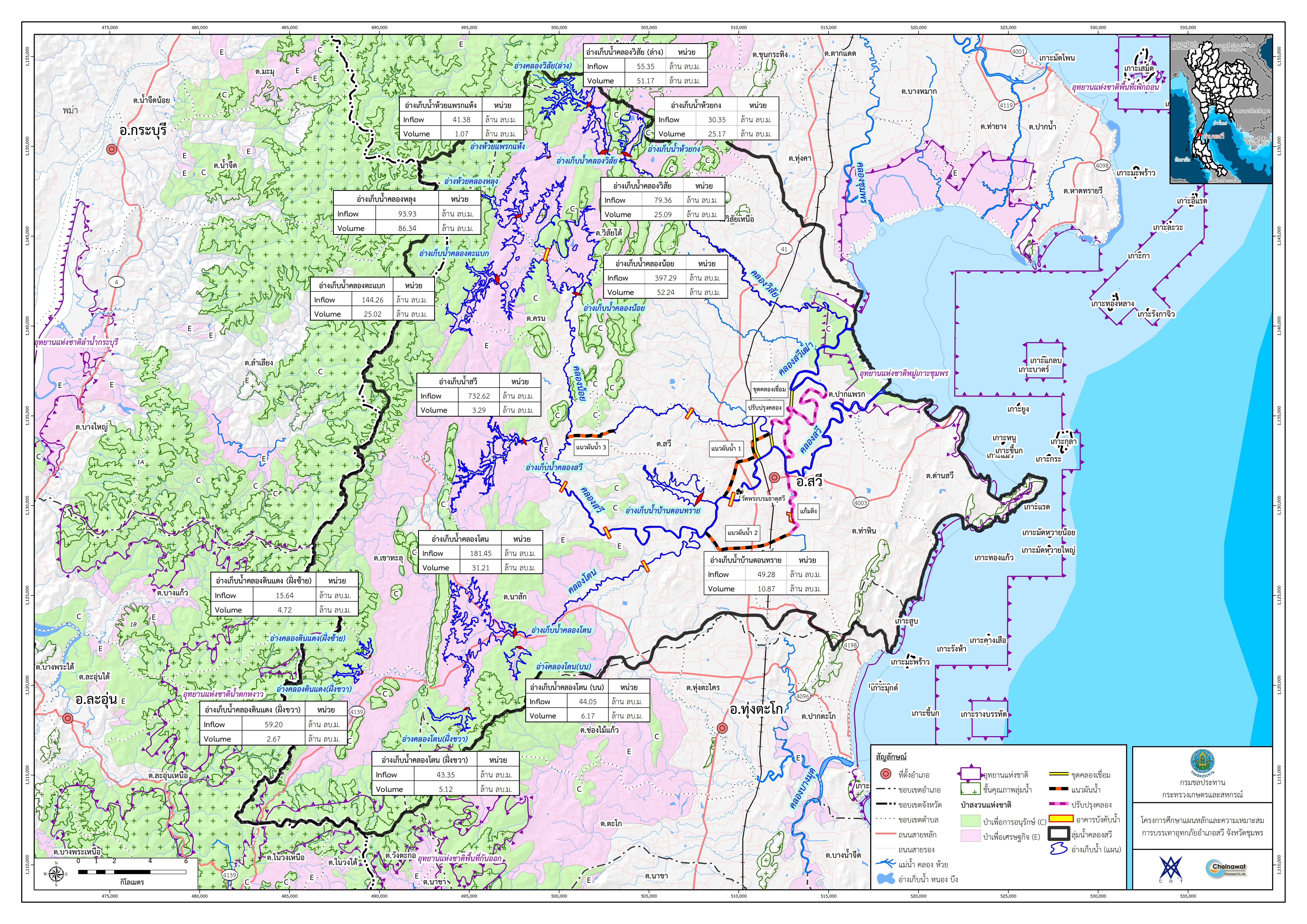 พื้นที่ลุ่มน้ำคลองสวี จังหวัดชุมพร เป็นลุ่มน้ำย่อยที่ประสบปัญหาอุทกภัย และเกิดความเสียหายจากปริมาณน้ำหลากทางพื้นที่ต้นน้ำไหลลงคลองสาขาต่าง ๆ จนเกินศักยภาพการระบายน้ำ และช่วงออกสู่ทะเลเกิดสภาวะน้ำทะเลหนุน ทำให้น้ำเอ่อล้นเข้าสู่พื้นที่อำเภอสวี และพื้นที่ในลุ่มน้ำย่อยสวี สร้างความเสียหายต่อพื้นที่เกษตรและบ้านเรือน นอกจากนี้ในพื้นที่ลุ่มน้ำคลองสวี มีพื้นที่เกษตรกรรมขยายตัวเพิ่มขึ้น มีการปลูกพืชผลไม้เศรษฐกิจ จึงเกิดปัญหาการขาดแคลนน้ำ เนื่องจากไม่มีแหล่งน้ำต้นทุนสำหรับการบริหารจัดการน้ำ กรมชลประทานจึงมอบหมายให้ COT ดำเนินการศึกษาแผนหลักการพัฒนาแหล่งน้ำ และบรรเทาอุทกภัยลุ่มน้ำคลองสวีทั้งลุ่มน้ำ โดยคํานึงถึงปัญหาการขาดแคลนน้ำ ปัญหาอุทกภัย และปัญหาน้ำเสียในพื้นที่ มีประเภทโครงการพัฒนาแหล่งน้ำ ได้แก่ อ่างเก็บน้ำ ฝาย ประตูระบายน้ำ และคลองผันน้ำ จากนั้นนำมาเรียงลำดับความสำคัญของการดำเนินโครงการ เพื่อคัดเลือกโครงการจากแผนหลักที่มีความสำคัญและเร่งด่วน และนำมาศึกษาความเหมาะสมต่อไป