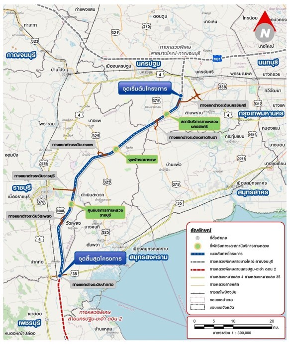 ทางหลวงพิเศษระหว่างเมืองหมายเลข 8 สายนครปฐม – ปราณบุรี ช่วง นครปฐม – ปากท่อ บริเวณ กม.9+855.000 จุดสิ้นสุดเชื่อมต่อทางหลวงหมายเลข 35 (ถนนธนบุรี-ปากท่อ) ประมาณ กม.81+300.000