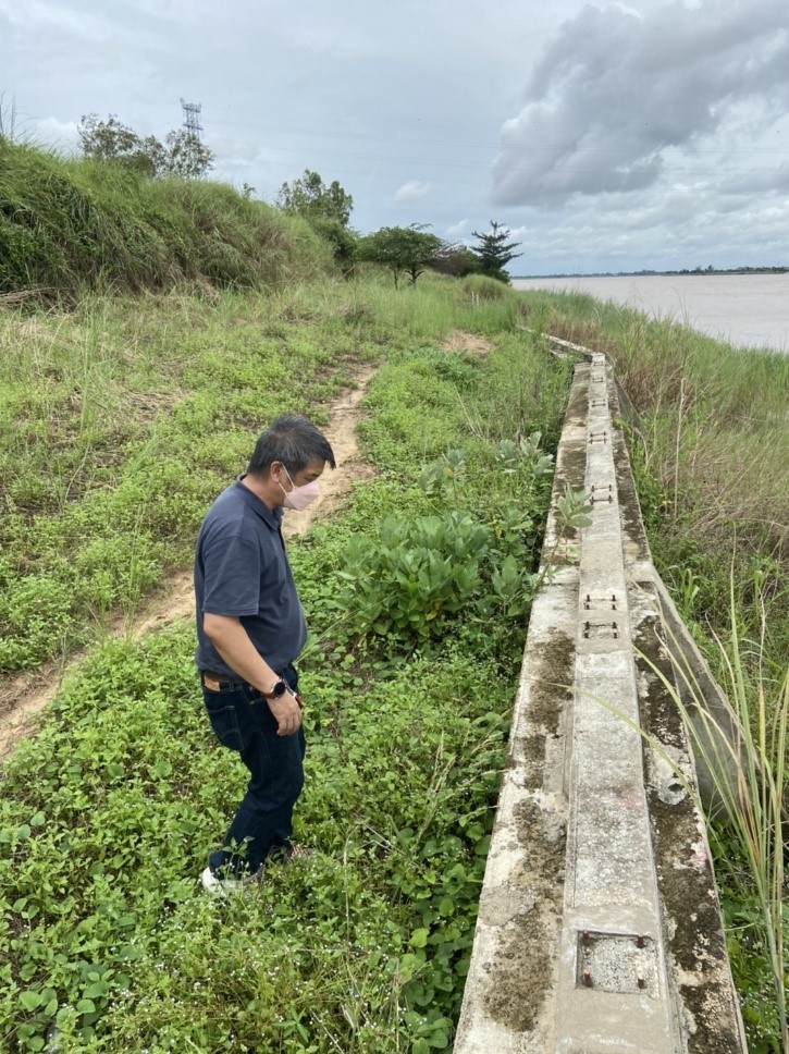 เป็นการดำเนินงานการสำรวจคันกั้นน้ำที่เสียหายตามลำน้ำโขง และออกแบบแนวคิดในการซ่อมแซมคันกั้นน้ำ เขื่อนดังกล่าวก่อสร้างมาแล้ว 8 ปี มีความยาว 550 เมตร