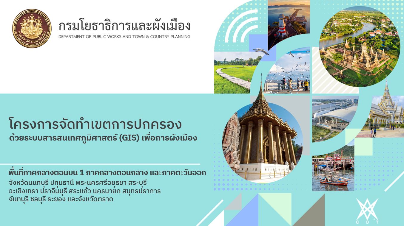 โครงการนี้มีวัตถุประสงค์เพื่อจัดทำข้อมูลเขตการปกครองในระดับหมู่บ้าน ตำบล อำเภอ และจังหวัด โดยใช้ระบบสารสนเทศภูมิศาสตร์ (GIS) มาตราส่วน 1:4,000 ครอบคลุม 13 จังหวัดในภาคกลางตอนบน 1 ภาคกลาง และภาคตะวันออกของประเทศไทย ข้อมูลเขตการปกครองเหล่านี้อ้างอิงตามคำบรรยายเขตการปกครองของกระทรวงมหาดไทย และบูรณาการเข้ากับฐานข้อมูลผังเมืองของกรมโยธาธิการและผังเมือง ผลลัพธ์ที่ได้จะเป็นชุดข้อมูลเขตการปกครอง ที่เชื่อถือได้ สามารถใช้งานร่วมกับข้อมูลทางกายภาพการผังเมือง ของกรมโยธาธิการและผังเมือง เพื่อประโยชน์ต่อการผังเมือง